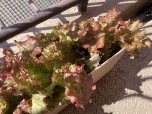 保育所への出勤前、ベランダ菜園のレタスを収穫。